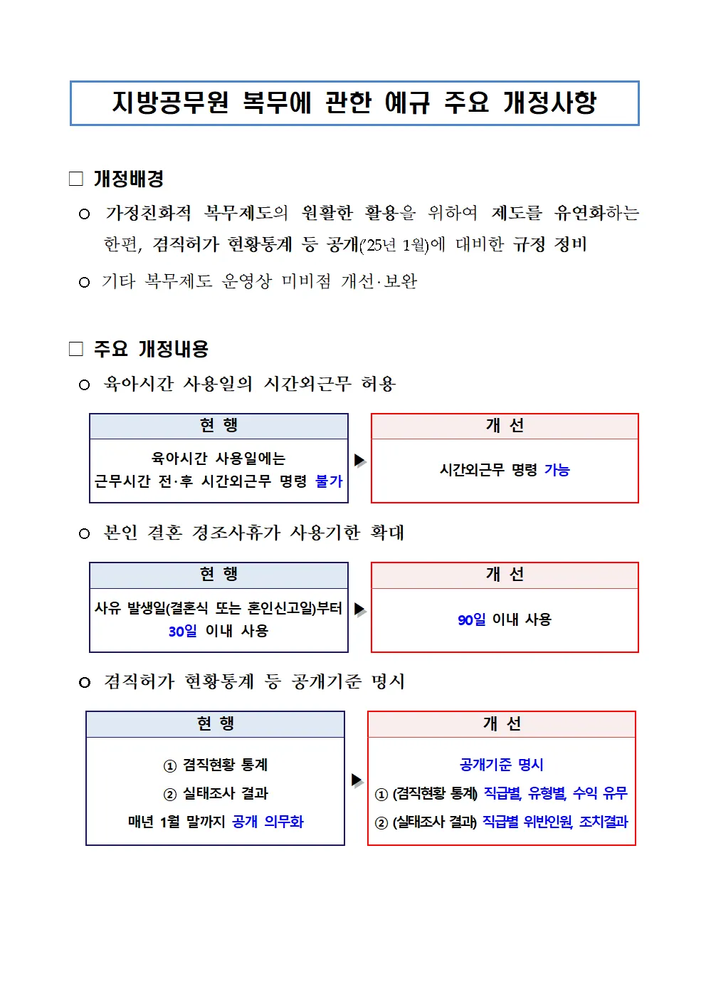 공무원 육아시간 사용한 날에도 초과근무 인정한다 / 2024. 10. 23 / 기사
