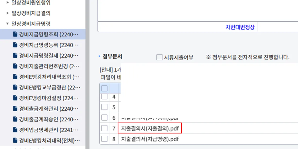지출결의서 밑으로는 이제 지출건마다 첨부문서에 있는 파일들을 인쇄하면 된다.
