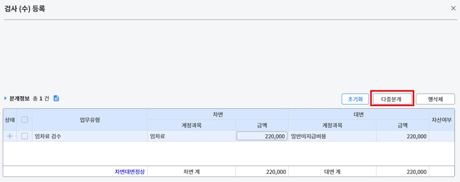 (1) 팝업창에서 항목을 선택 후 [다중분개] 후 승인 요청을 하면 회계과에서 분개 검증을 해준다. (회계과 검증해줄때까지 기다린다.)