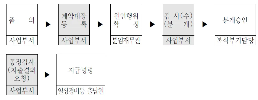 참고로 계약지출의 흐름은 아래와 같으며, 이 페이지에서는 아래 이미지에서 [검사] 단계부터 하면 된다.