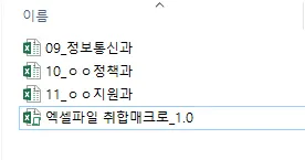 아래처럼, 취합할 파일과 매크로 파일을 같은 폴더로 위치 시킨다.