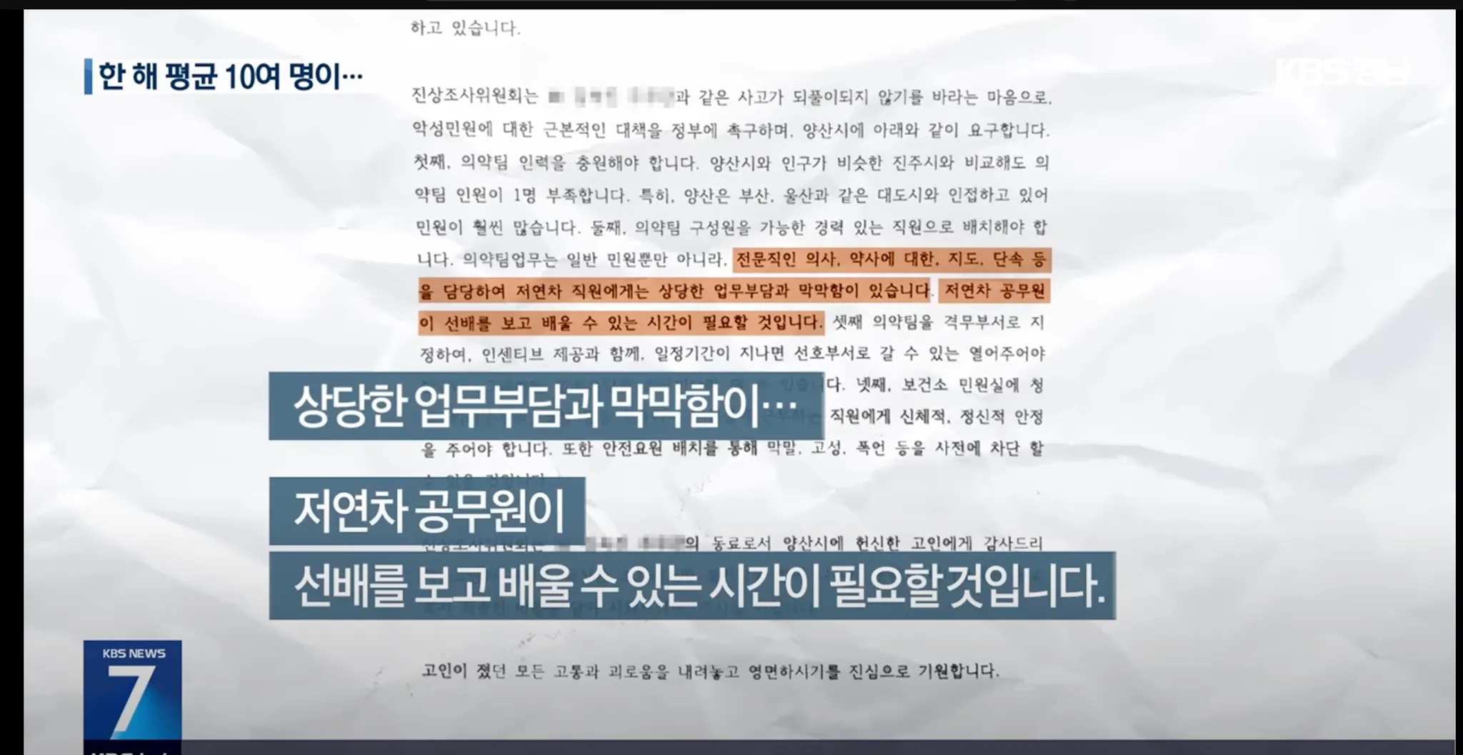 업무의 공포는 신규공무원에게는 죽음으로 내모는 두려움이며, 이는 개개인의 역량 부족이 아닌 시스템의 문제입니다.
